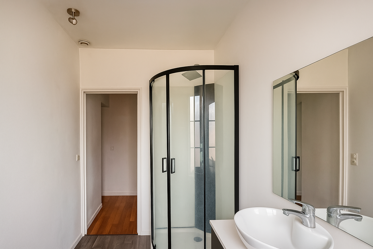 une salle d'eau moderne et toilettes séparées