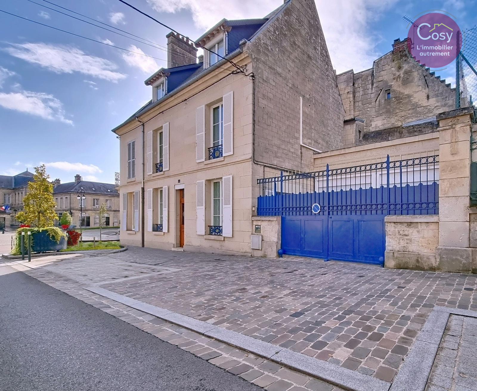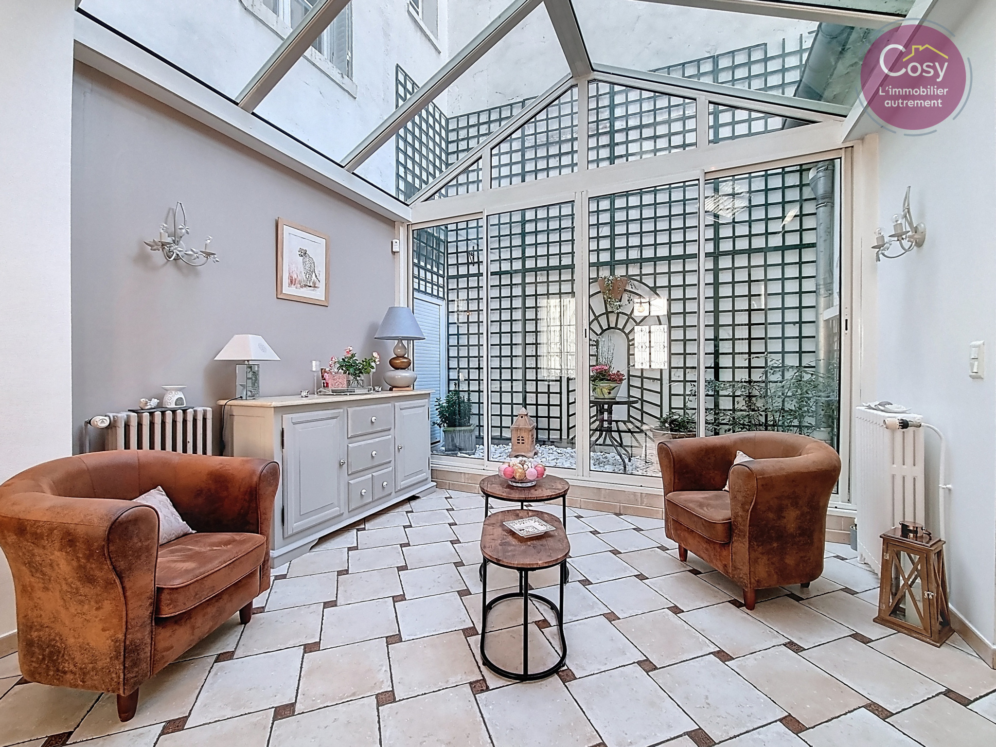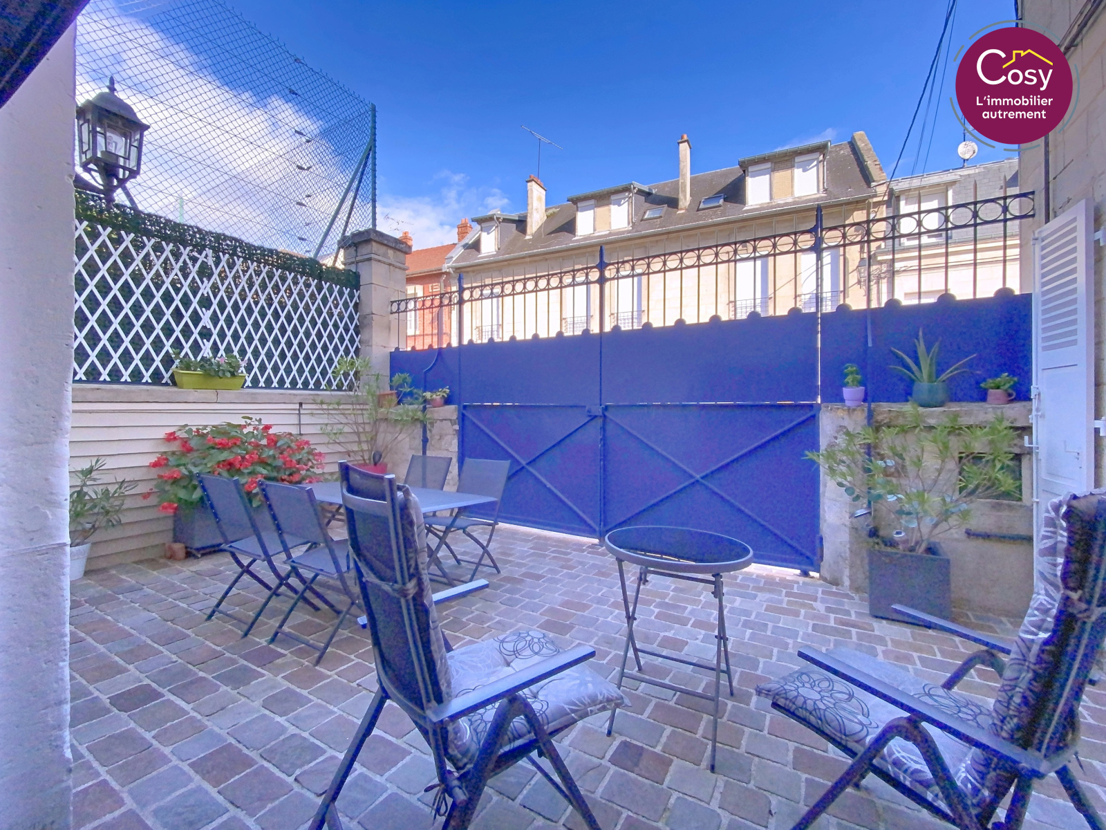 Maison de ville à vendre à Soissons centre. 151 m², 3 chambres, cour pavée, verrière, deux garages. Élégance et calme en plein cœur de ville.