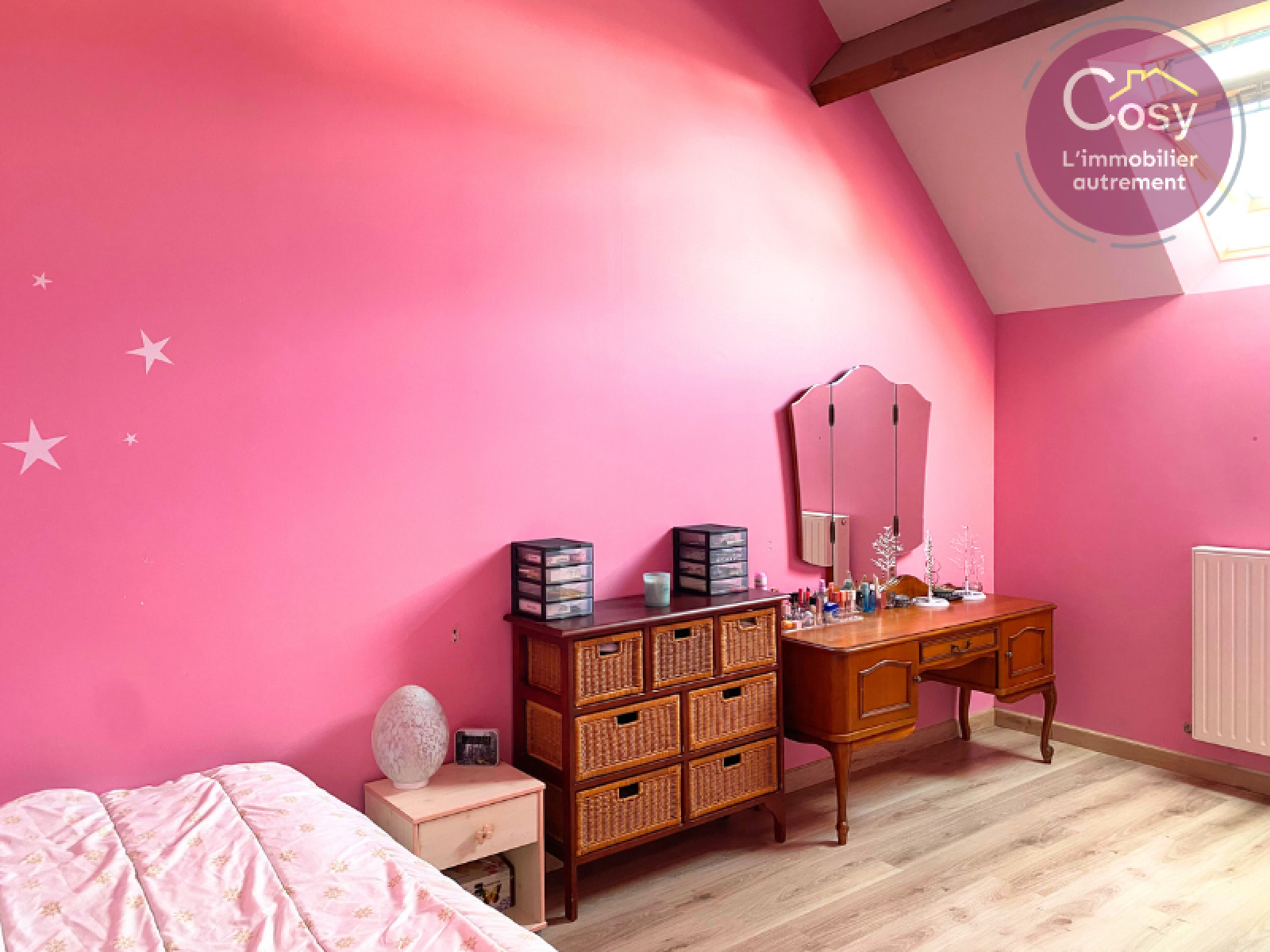 A l'étage, deux grandes chambres vous attendent avec des espaces dressing et bureaux. Une salle de bains spacieuse et lumineuse.
