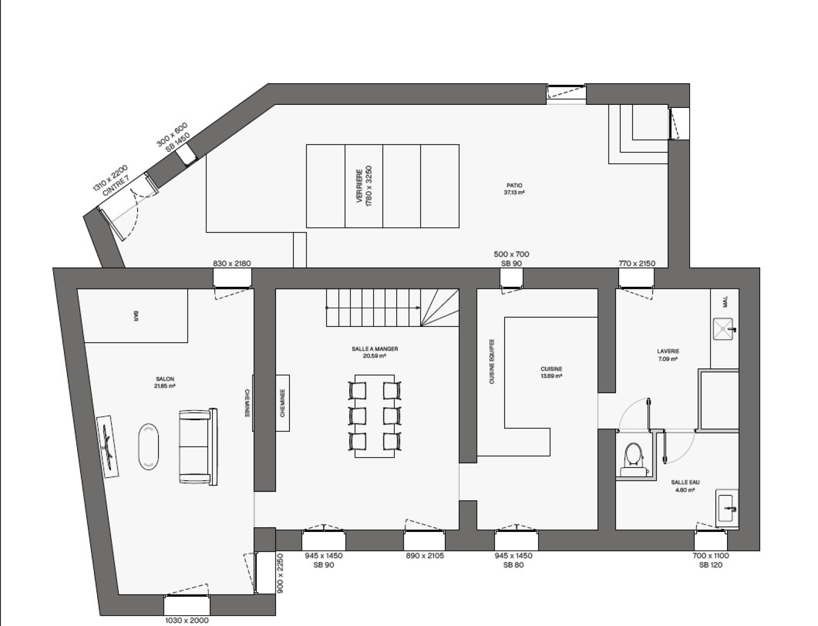 Ce niveau s’articule autour de deux accès distincts : l’un par le séjour principal, l’autre par un espace vitré sous verrière zénithale, véritable jardin d’hiver baigné de lumière.