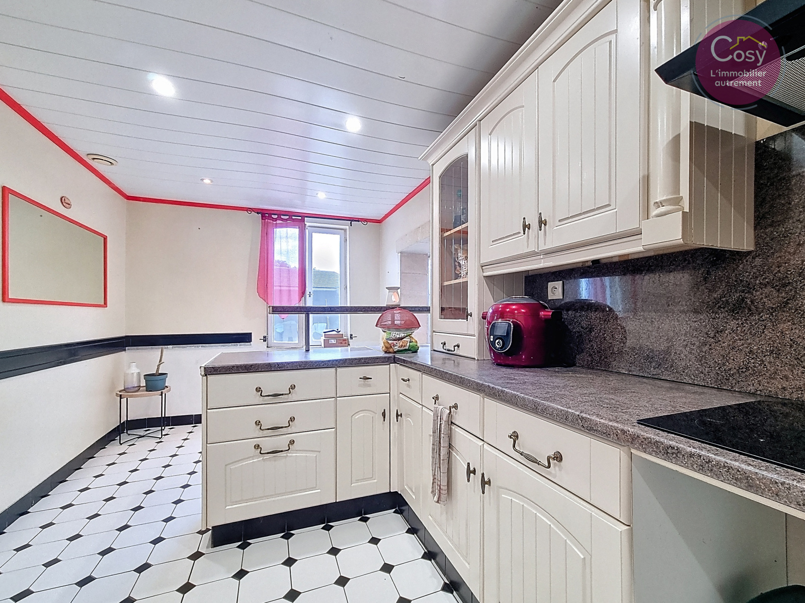 La cuisine, indépendante, est entièrement aménagée et équipée. Une buanderie attenante et une salle d’eau complètent le rez-de-chaussée, ainsi qu’un premier WC.
