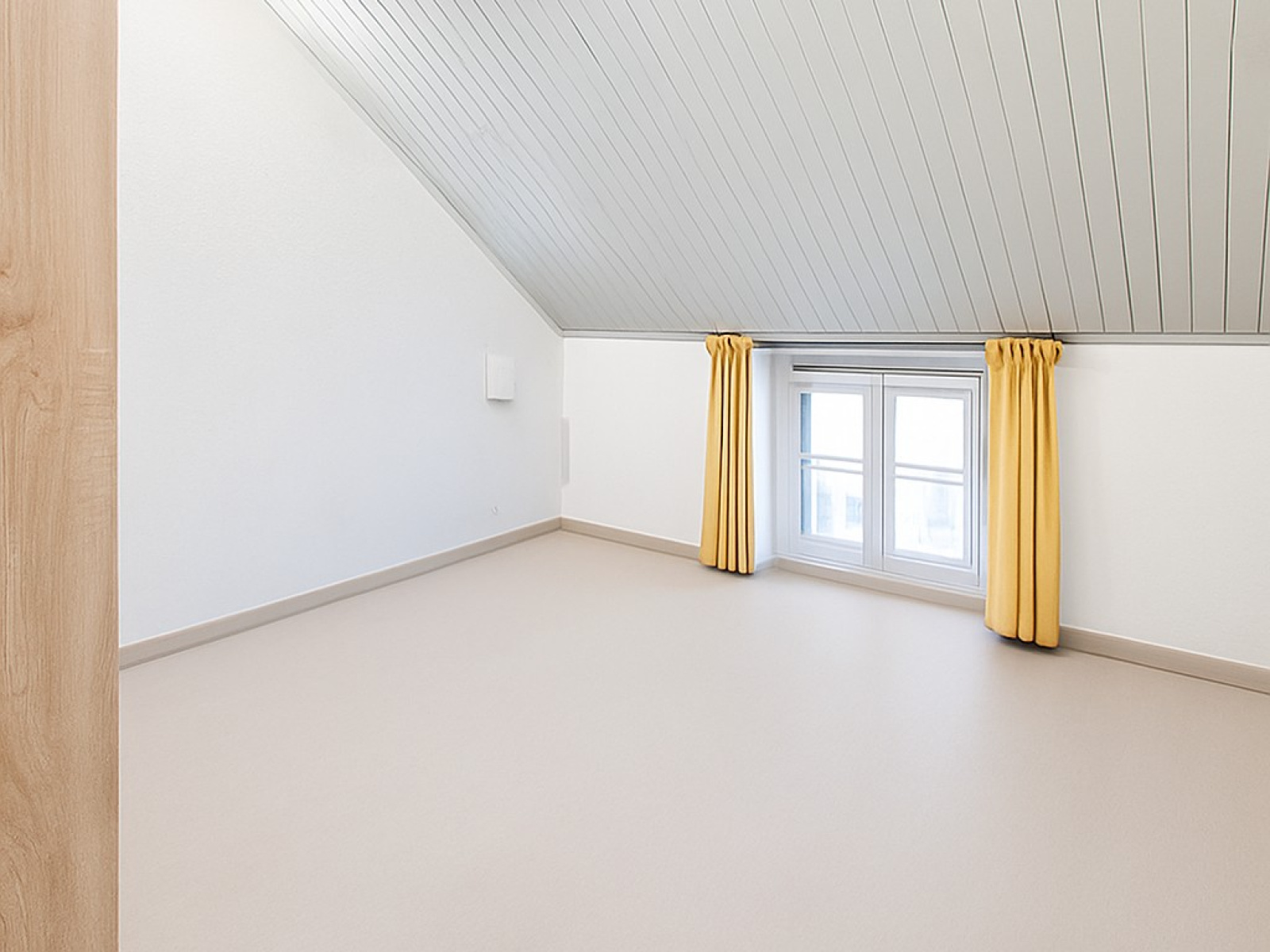 Le terrain de 2 030 m² se déploie en plusieurs ambiances : une cour à l’avant, une grande terrasse à l’arrière — à aménager, pourquoi pas, en solarium — et une vue dégagée sur le village, avec la forêt en toile de fond. Une sensation de calme et de déconnexion au quotidien.