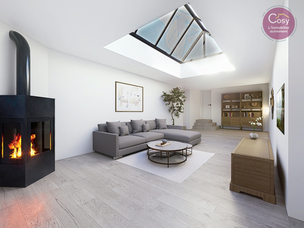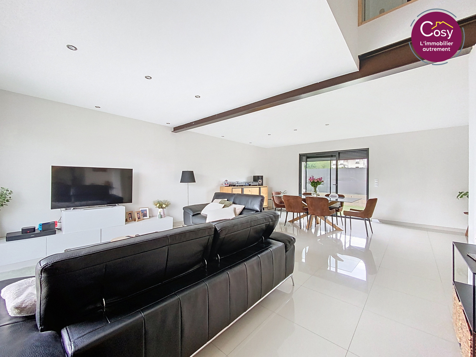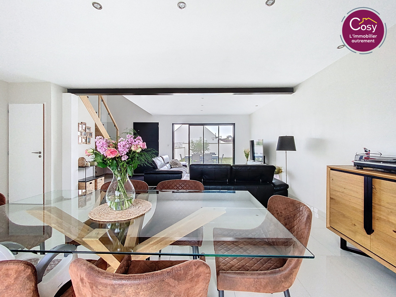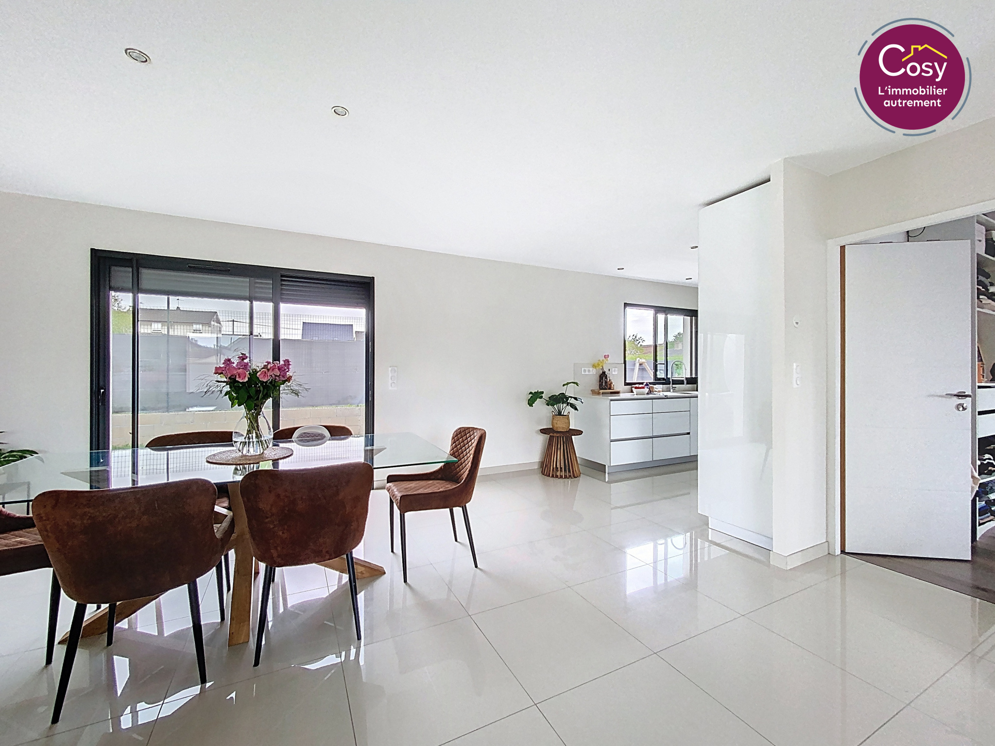 Un espace ouvert de plus de 53 m2, avec de grandes baies vitrées, une cuisine aux lignes épurées.
