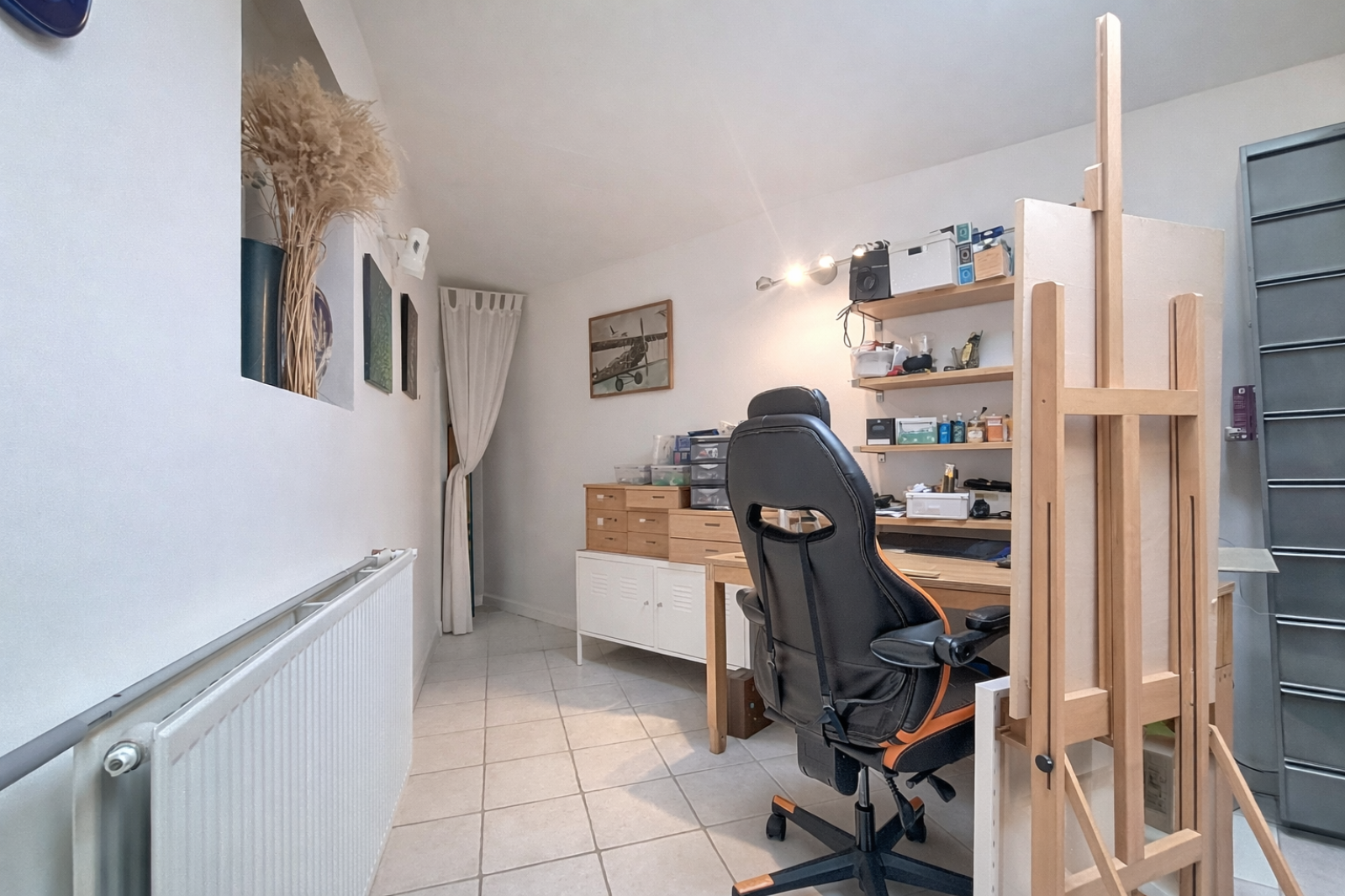 À l’étage, les volumes sont intéressants et laissent place à vos projets : un grand palier pouvant devenir un espace lecture ou détente, deux chambres dont une avec accès extérieur, un bureau idéal pour le télétravail ou une chambre d’appoint, ainsi qu’un espace buanderie.