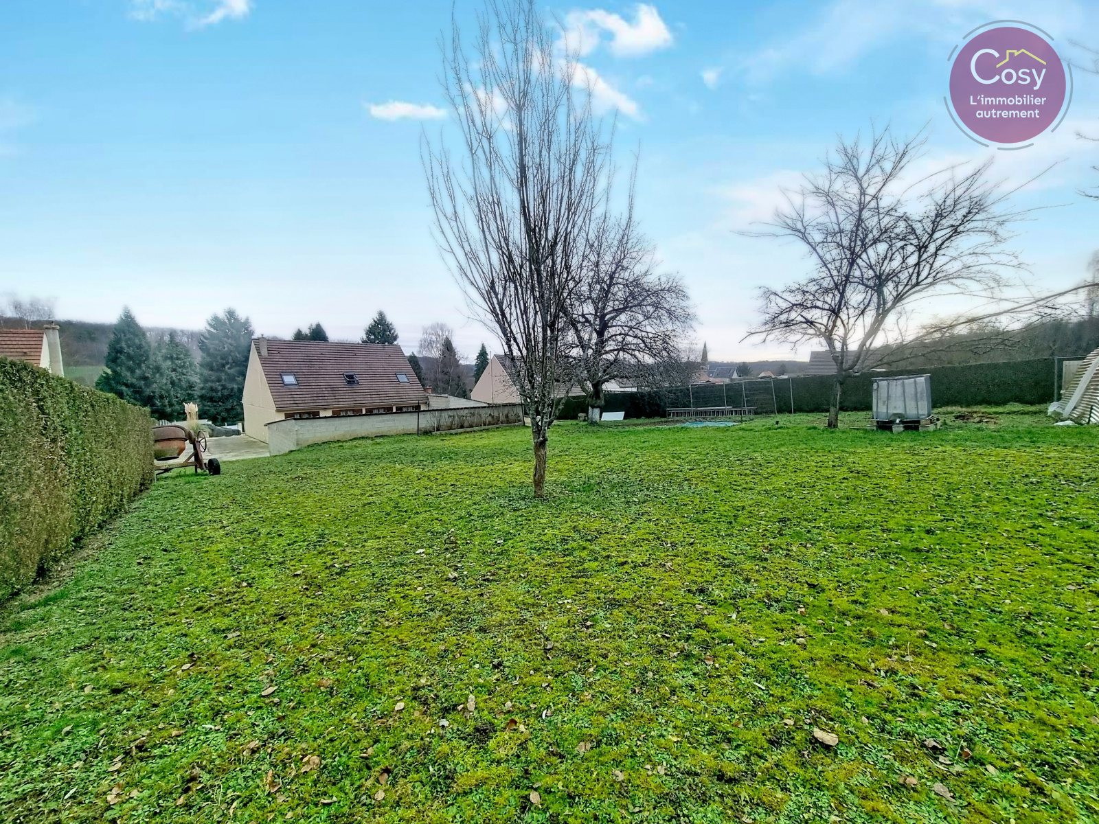 À l’extérieur Capucine s’ouvre sur un superbe terrain de 2 671 m² arboré et fruitier un véritable écrin de verdure propice aux jeux des enfants, aux repas d’été et aux instants de calme